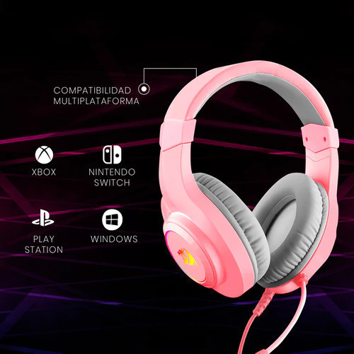 Extras: Control de volumen en auricular, iluminación RGB en copas de auricular.