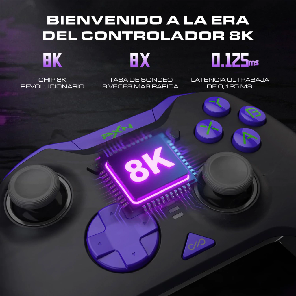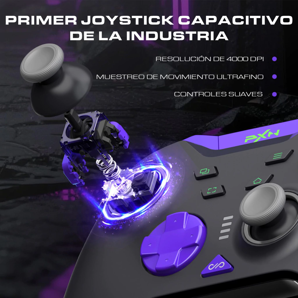 El PXN P5 8K redefine lo que significa jugar con precisión y velocidad. Equipado con joysticks capacitivos de resolución real de 8000 niveles y latencia ultrabaja de apenas 0,125 ms, este mando ofrece una respuesta inmediata y fluida ideal para juegos competitivos y de simulación.