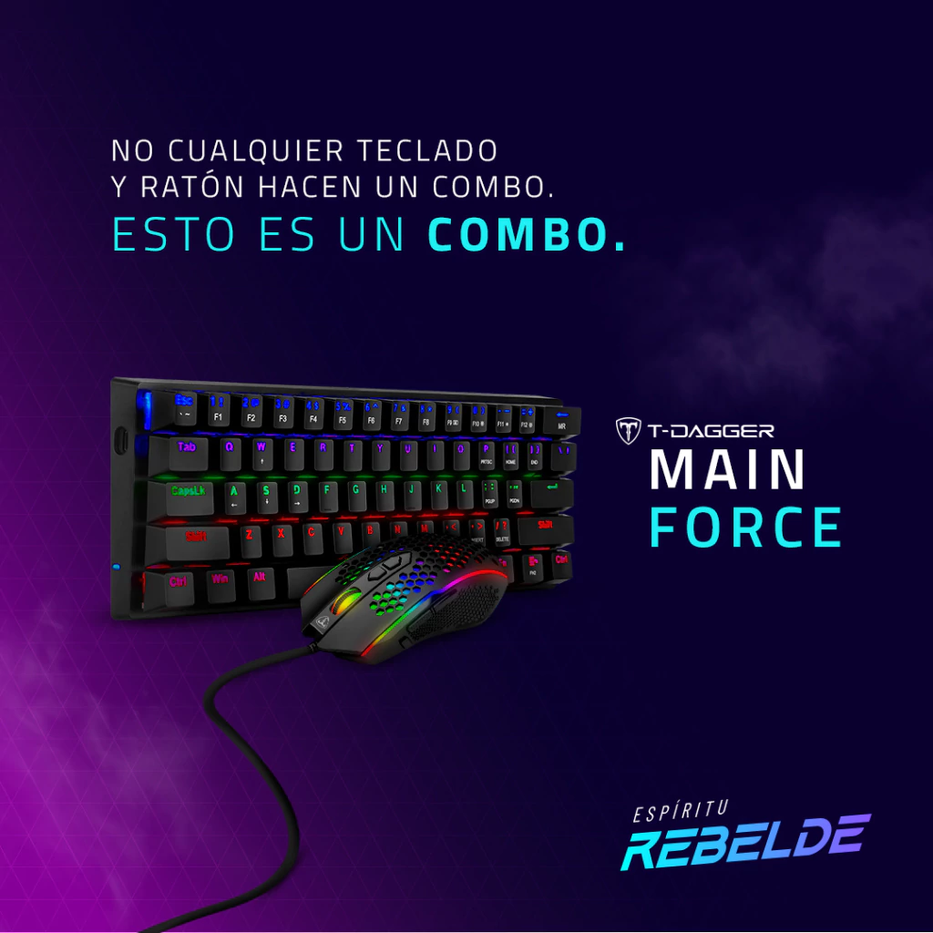 Lo decimos de entrada: el Main Force Lite Black es el combo ideal para quienes buscan practicidad sin perder estilo. Está compuesto por dos aliados que se complementan a la perfección: un teclado mecánico 60% compacto y un ratón ligero y preciso, ambos con retroiluminación RGB. Los podés llevar a todas partes, conectarlos en cualquier equipo y tener todo listo para entrar en acción.