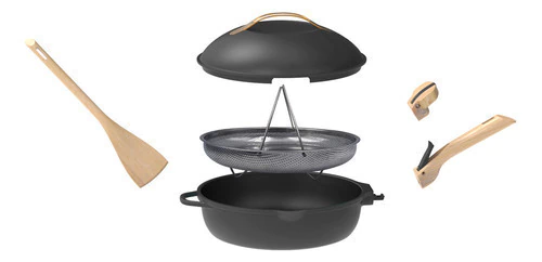 Completo Set de Accesorios: Incluye 2 asas extraíbles (una corta y una larga), una cesta para vapor/freír y una espátula de madera 100% ecológica.