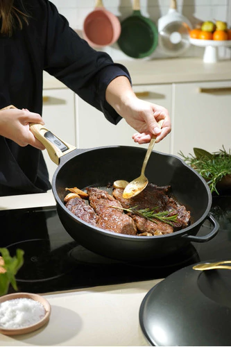 Apta para todo tipo de fuentes de calor: inducción, eléctrica, vitrocerámica, gas y horno hasta 240°C.