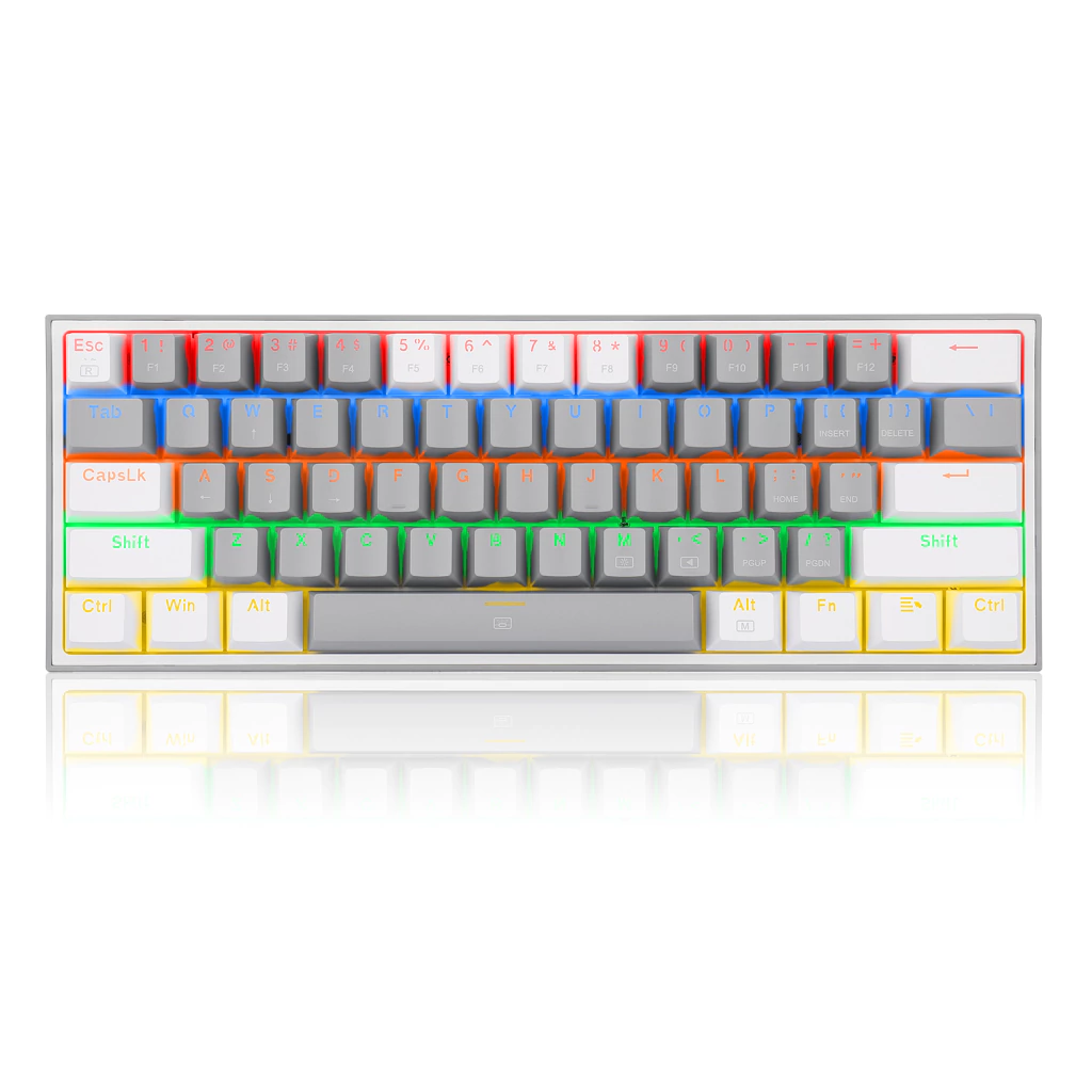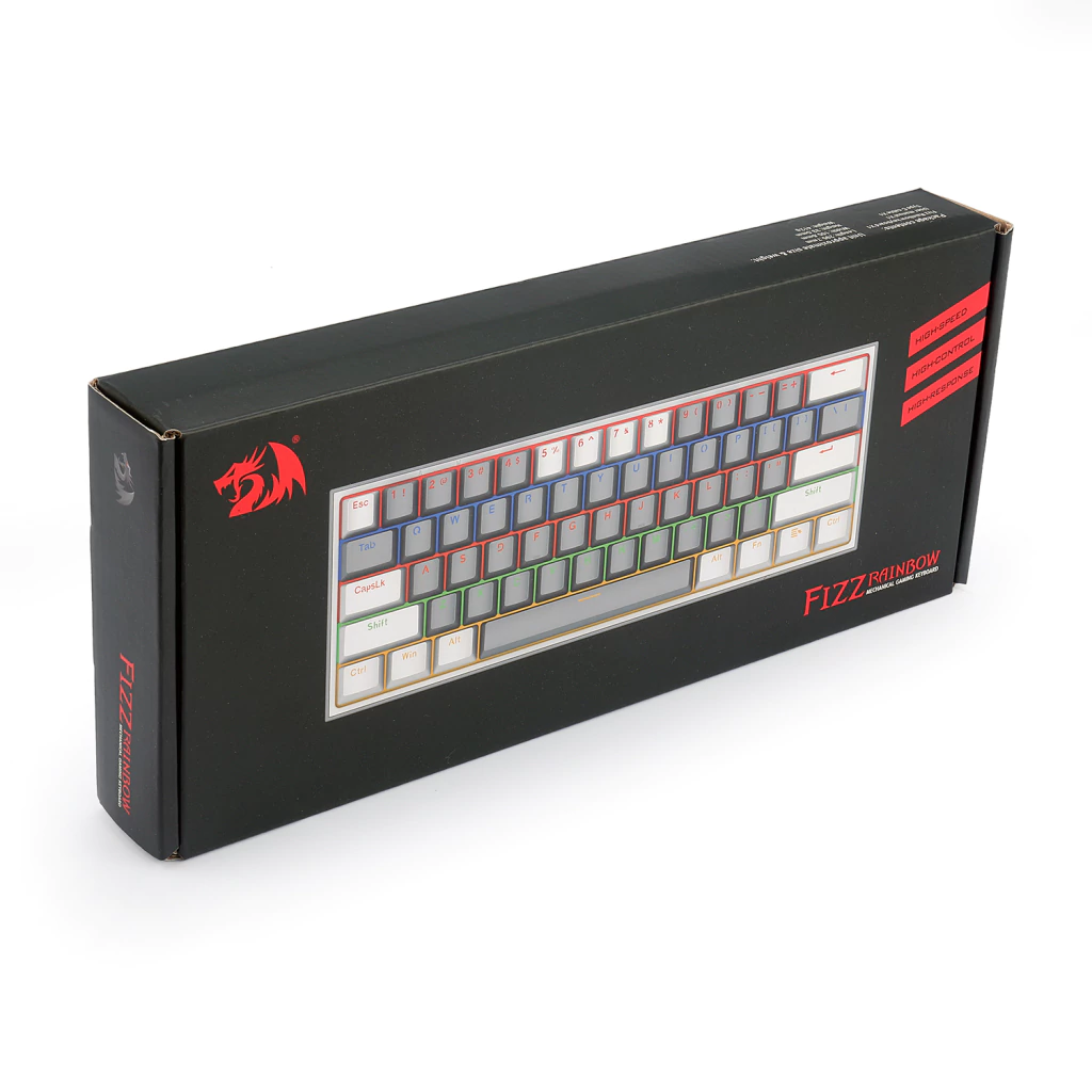 El Redragon Fizz K617 RGB es un teclado mecánico con cable ultracompacto con un diseño del 60%, ideal para jugadores que buscan optimizar el espacio en su escritorio. Cuenta con 61 teclas con un diseño de doble color.