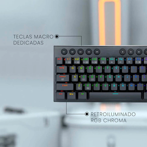 - Tipo Switch: Redragon Red Ultra low profile, lineal, fuerza de actuación 45 gr